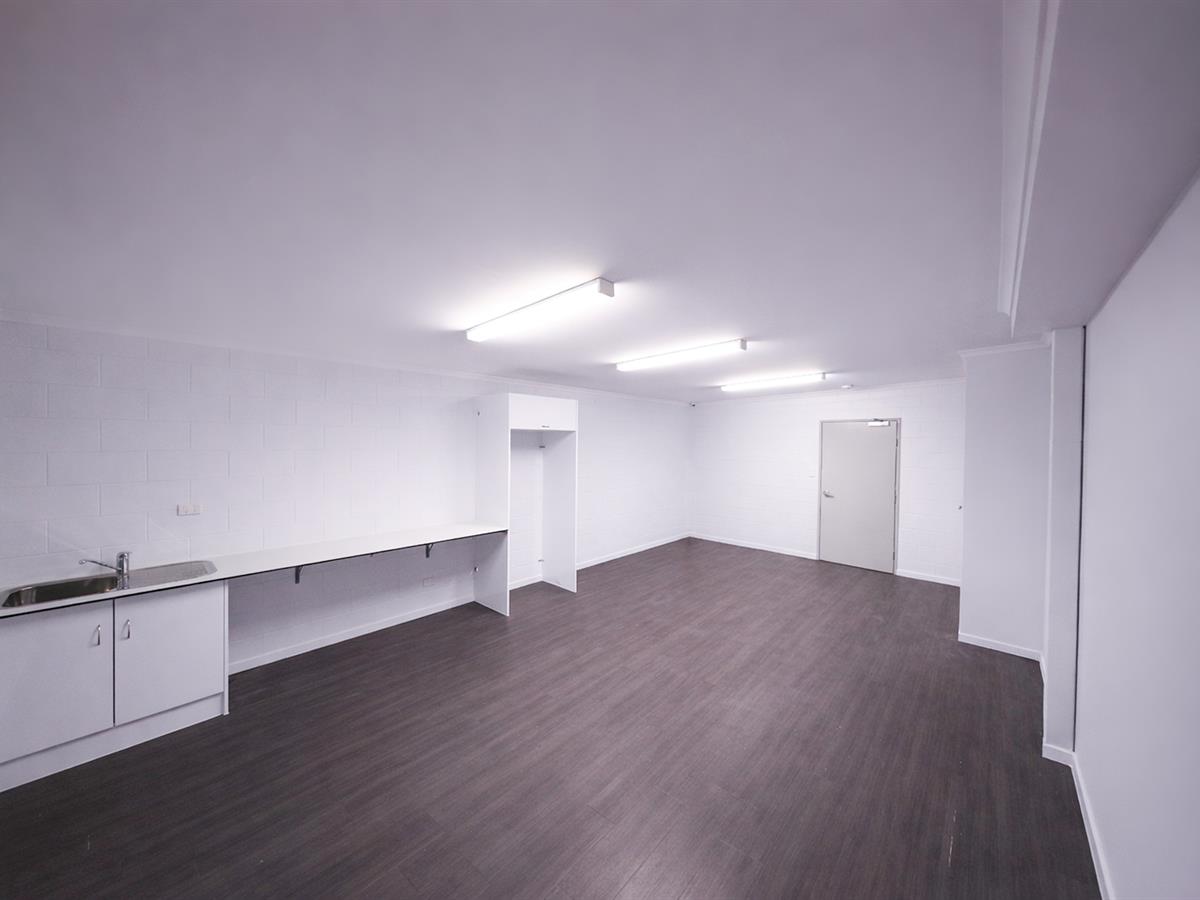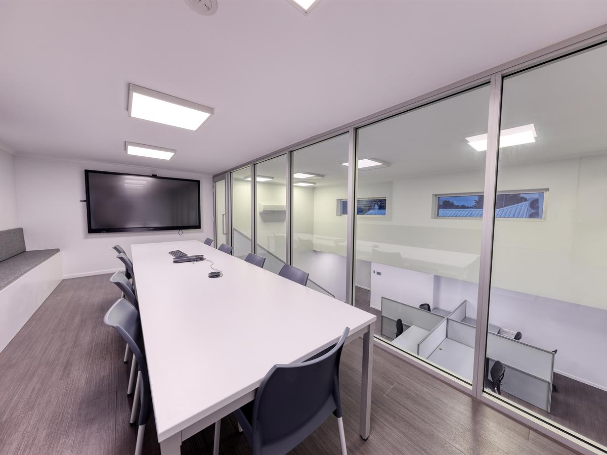fit-out providing a light-filled environment ideal for both client and staff engagement. The layout comprises of reception, five glass-partitioned offices, boardroom, open workspace, internal toilets and shower, and a large kitchen/staffroom.