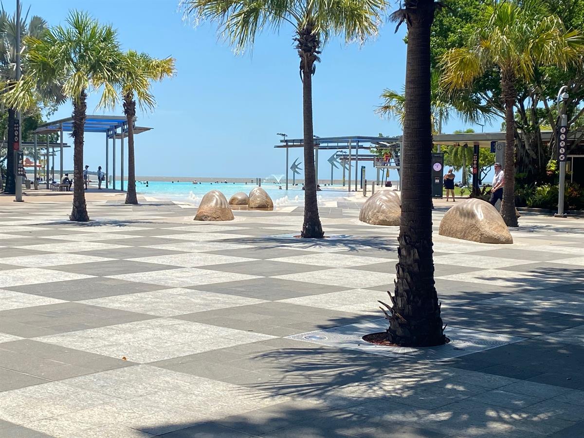 Lagoon entry, positioned alongside popular eateries and the Mantra accommodation Complex.